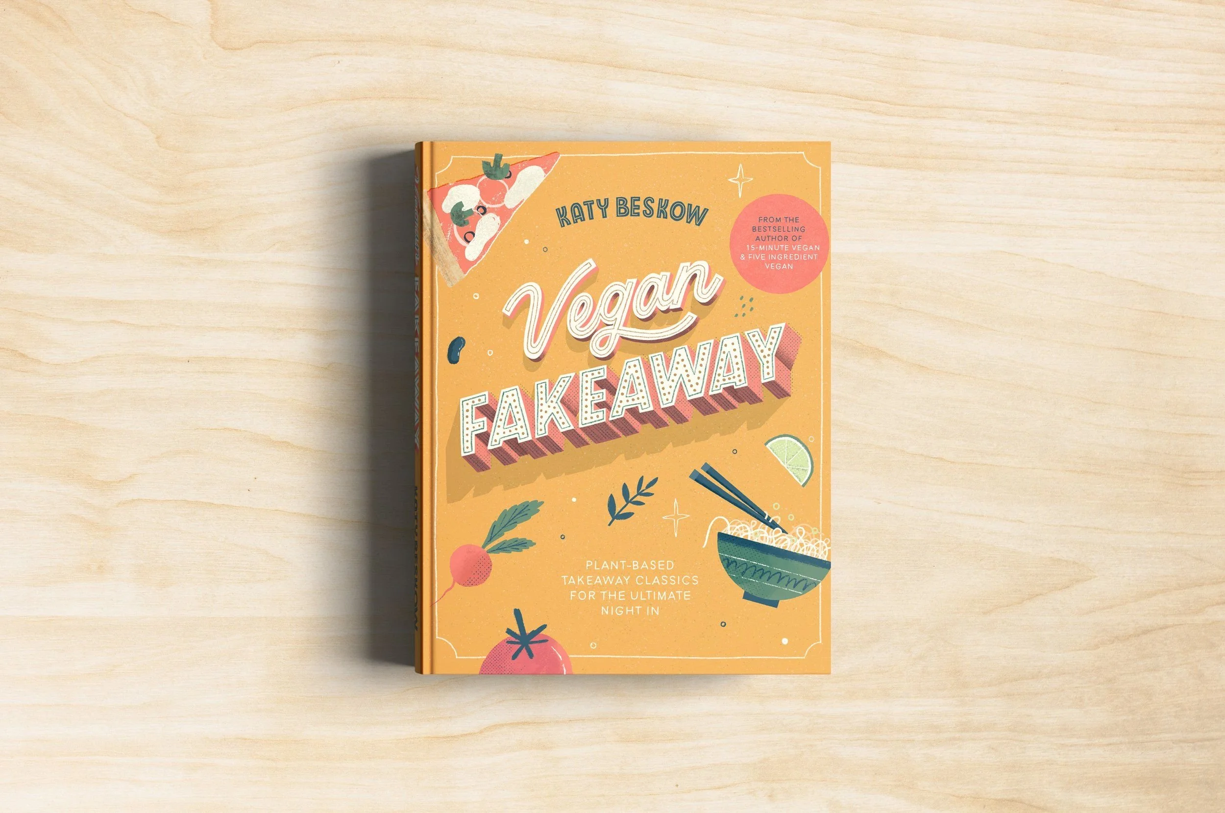 This was a chance to blend hand lettering with illustration, to create a bright and impactful cover that captures the essence of making delicious, plant-based takeaway dishes at home.